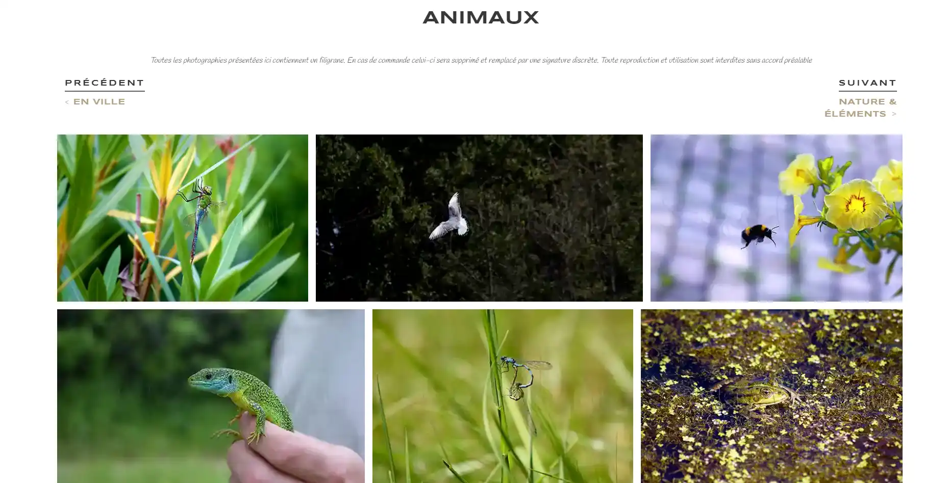 Développement d'un site pour un photographe. Le portfolio est la page principale.